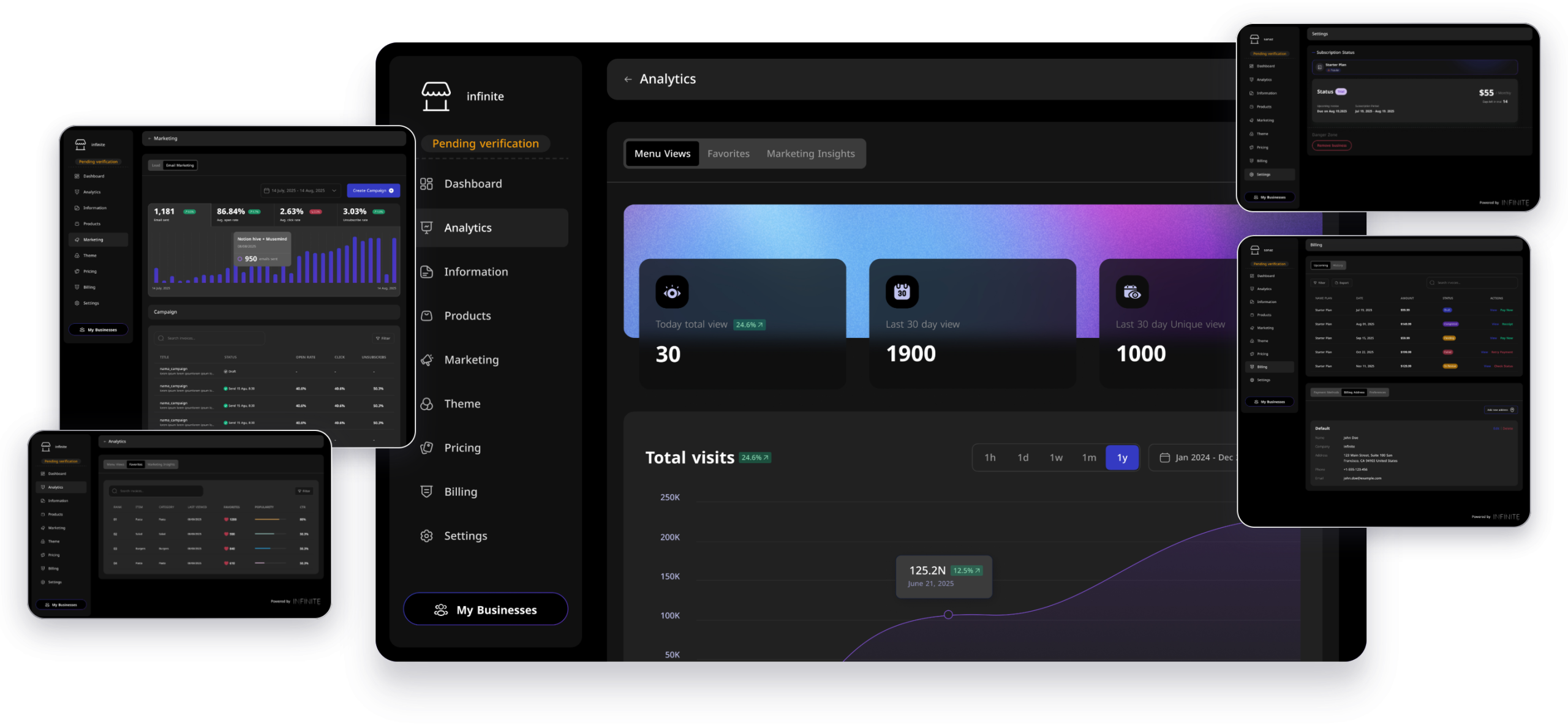 Infinite.onl is a comprehensive digital platform built for forward-thinking businesses that want to simplify operations, boost productivity, and create meaningful customer experiences. Whether you're running a restaurant, a retail store, or a service-based brand, Infinite.onl brings together essential tools—like smart booking systems, customizable digital menus, customer analytics, and communication management into one seamless and secure environment.